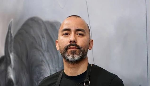 from his website: “The full suite of drawings reflects ... the external collective psychosis of a world engaged in perpetual warfare.” At the same time, “the body of work coalesces into what Valdez calls a “visual testimony of transformation, hope, love, and survival in 21st-century America.” “